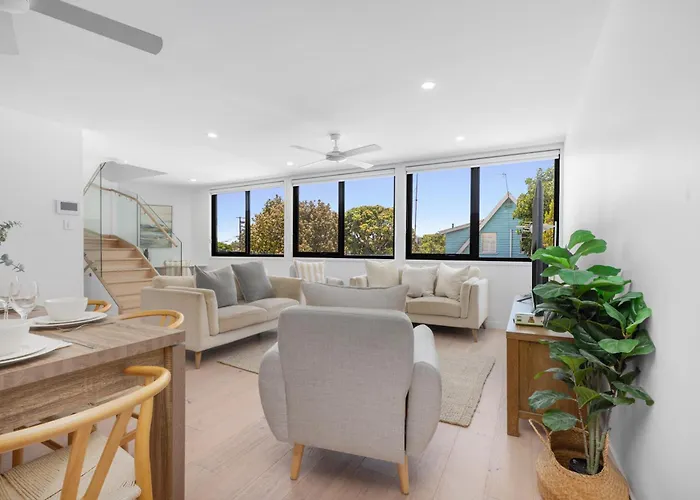 Esta casa de vacaciones, situado en el distrito Burleigh Heads, se encuentra a una distancia de 2 km del Parque nacional Burleigh Head y al alcance de lugares de compras como los Mercados del Pueblo. La villa está situada a poco más de 10 minutos en coche del Parque de Vida Silvestre David Fleay, mientras que la estación de autobuses Gold Coast Hwy at Third Avenue está a tan solo 5 minutos a pie. Entre los lugares de interés educativo a una distancia de 3 km de la villa Spacious 3Br Beach Townhouse With Parking Plus Views se incluye la Universidad Bond.